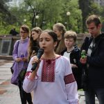 Біля пам’ятника Матерям 41-го року під звуки мелодій воєнних років зібралося близько 150 школярів району із навчальних закладів № 202, 294, 192, 218, 212.