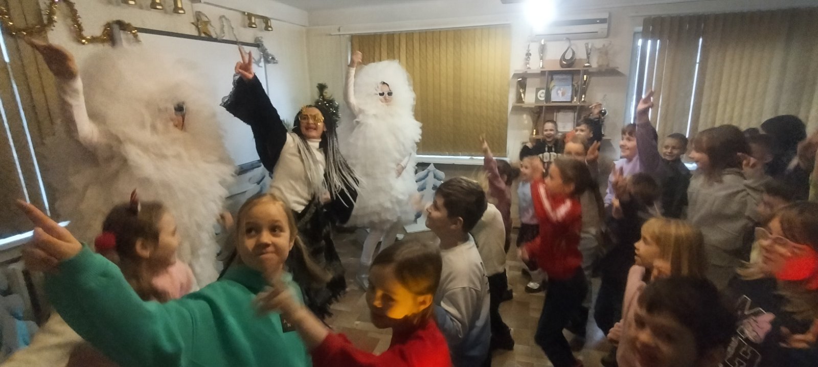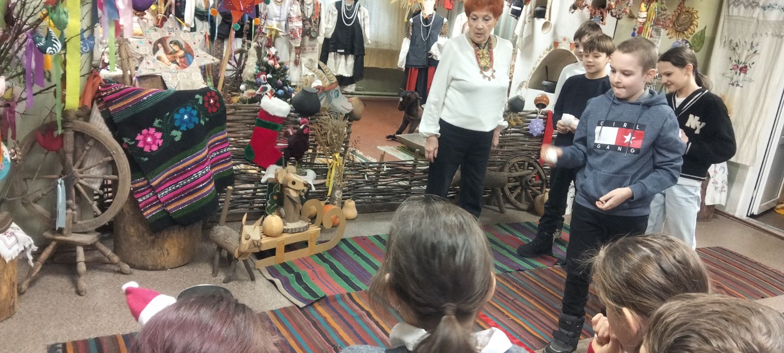 У гості до нас завітали учні 6-го класу СШ №202. Разом із керівником школи, методистом Євгенією Тарасенко, діти здійснили захопливу подорож у світ зимового календаря:
